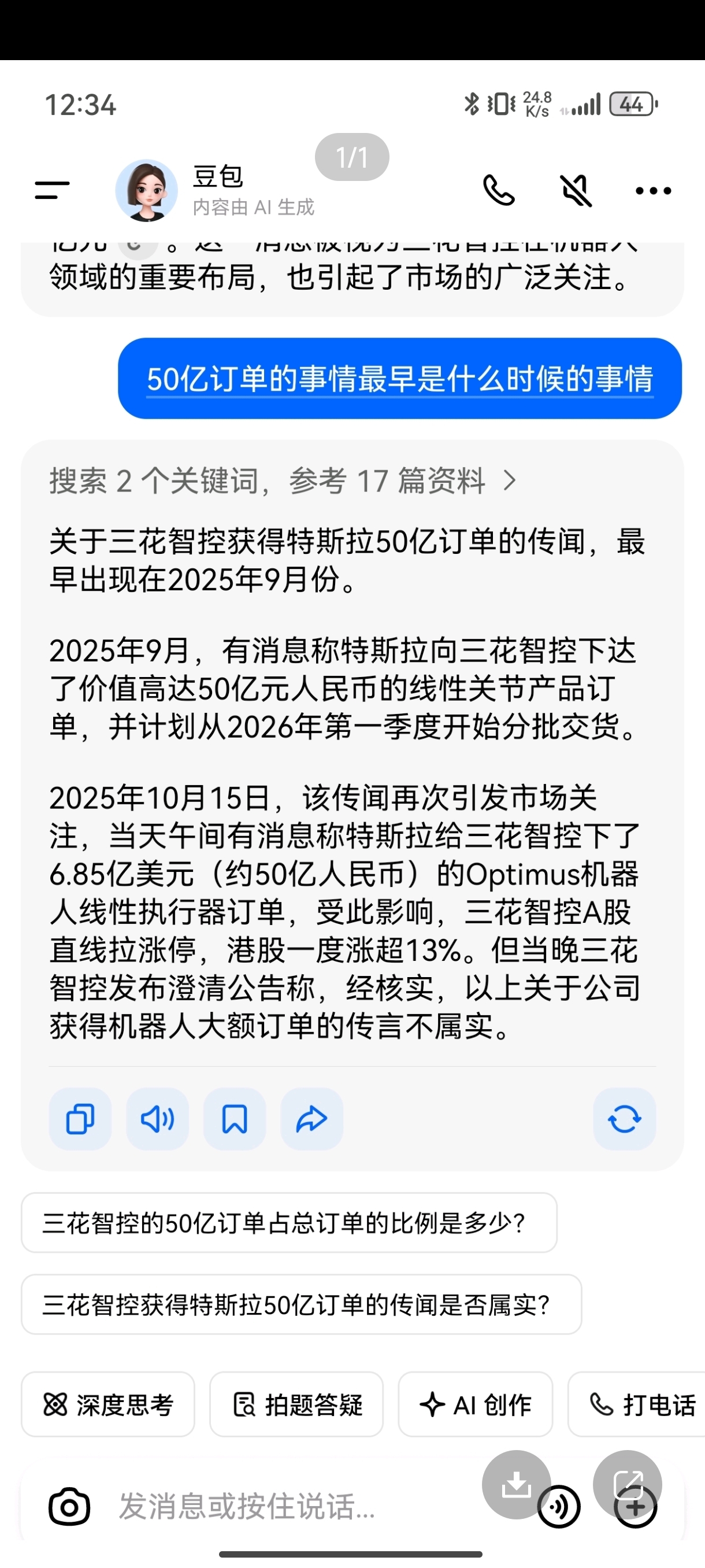 $三花智控(SZ002050)$ 注意看,9月份是说所有订单加起来50亿,包括特斯拉和人形,十月8日变成单单人形50亿,我认为9月份消息可信度很高,特斯拉体量本来就很大,50亿比较可信的,人形明年产量是不确定的,具体订单量马斯克都不知道