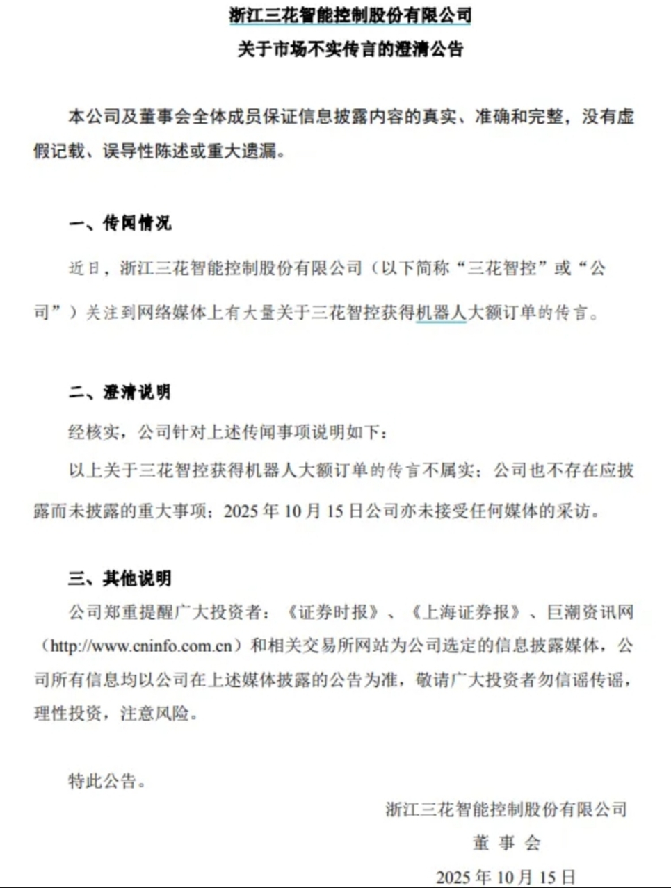 $三花智控(SZ002050)$ 官方已连夜澄清,还有一帮的家伙在自说自演。
