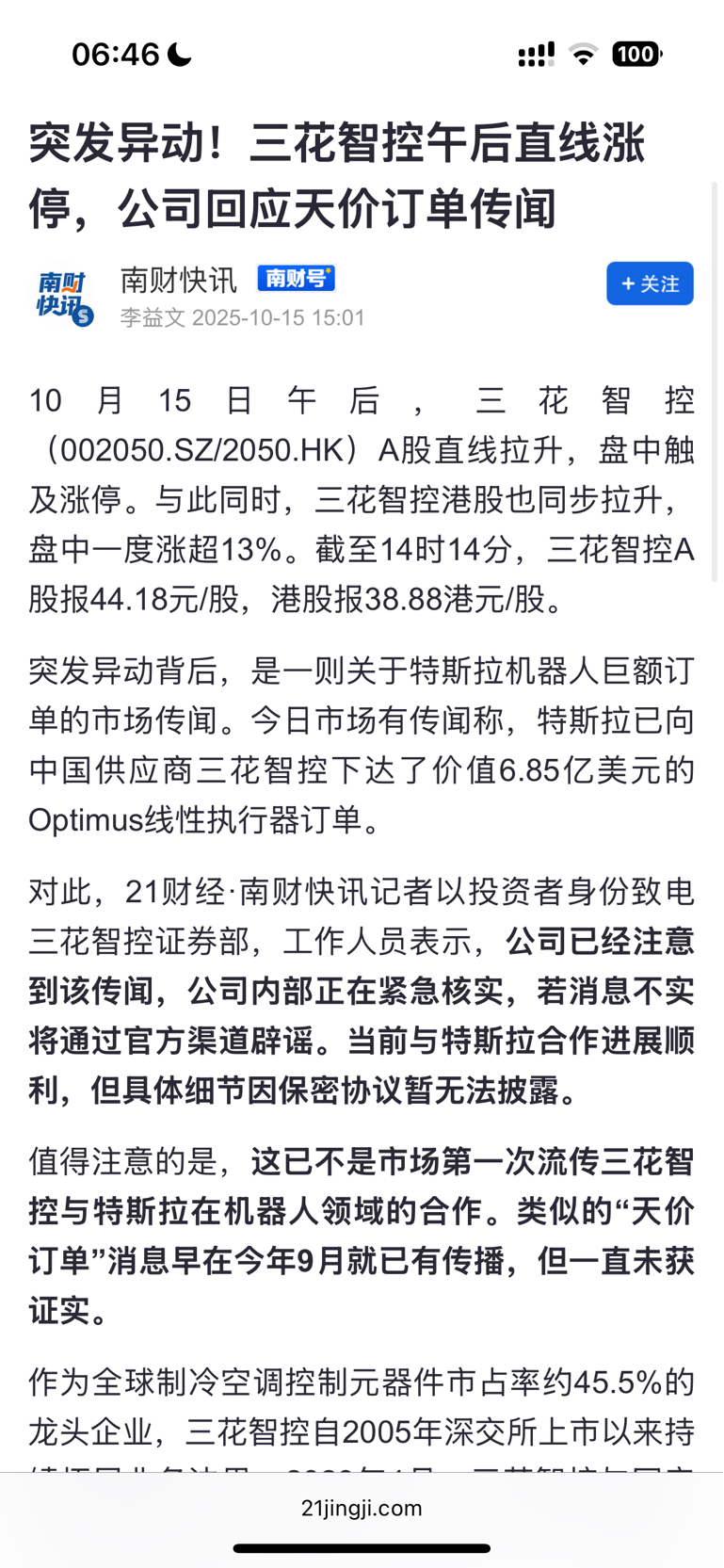 $三花智控(SZ002050)$ 李益文和21财经需要承担责任吗?公司公告都说15日没有接受记者采访!
