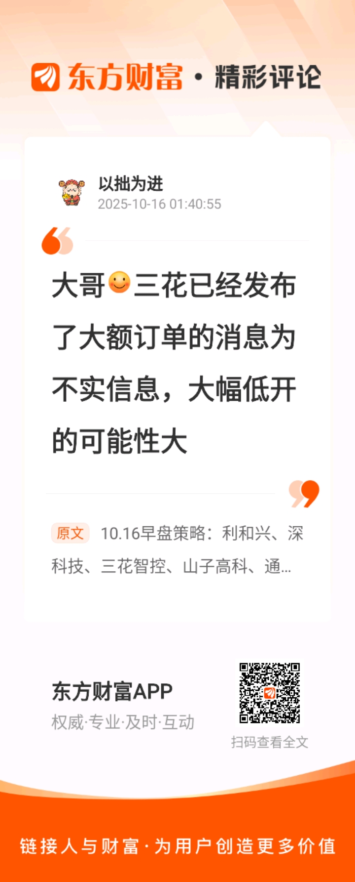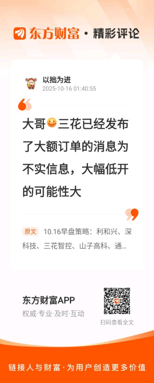 $三花智控(SZ002050)$$闻泰科技(SH600745)$$中国核建(SH601611)$//@以拙为进 :大哥三花已经发布了大额订单的消息为不实信息,大幅低开的可能性大