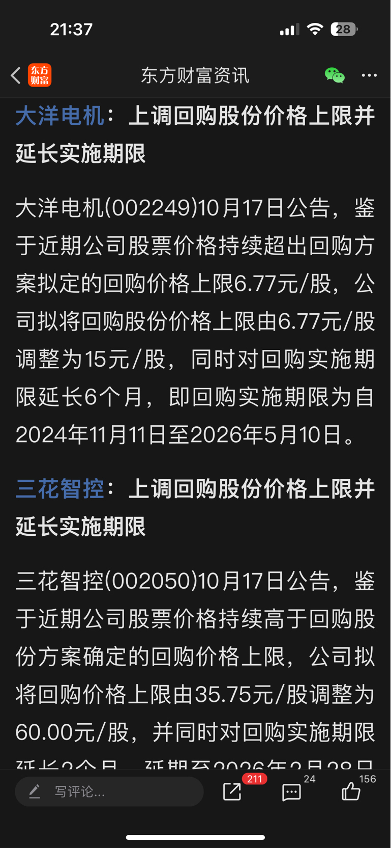 $三花智控(SZ002050)$ 以后三花智控和大洋电机一个节奏,大股东极度看好自己公司的未来前景,比减持跑路之流强太多,一年分红两次而且分红力度翻倍,良心公司