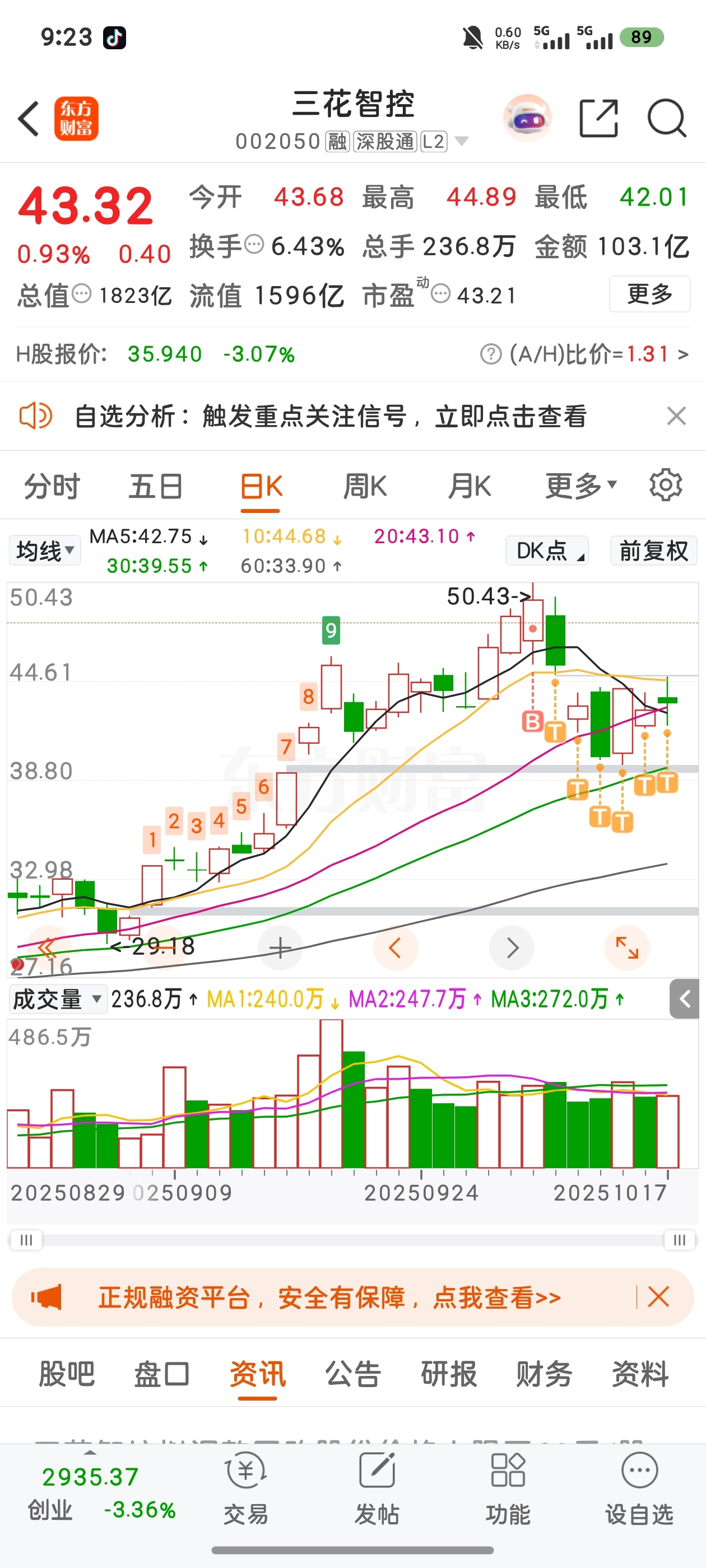 $三花智控(SZ002050)$ 几乎最高追进来的