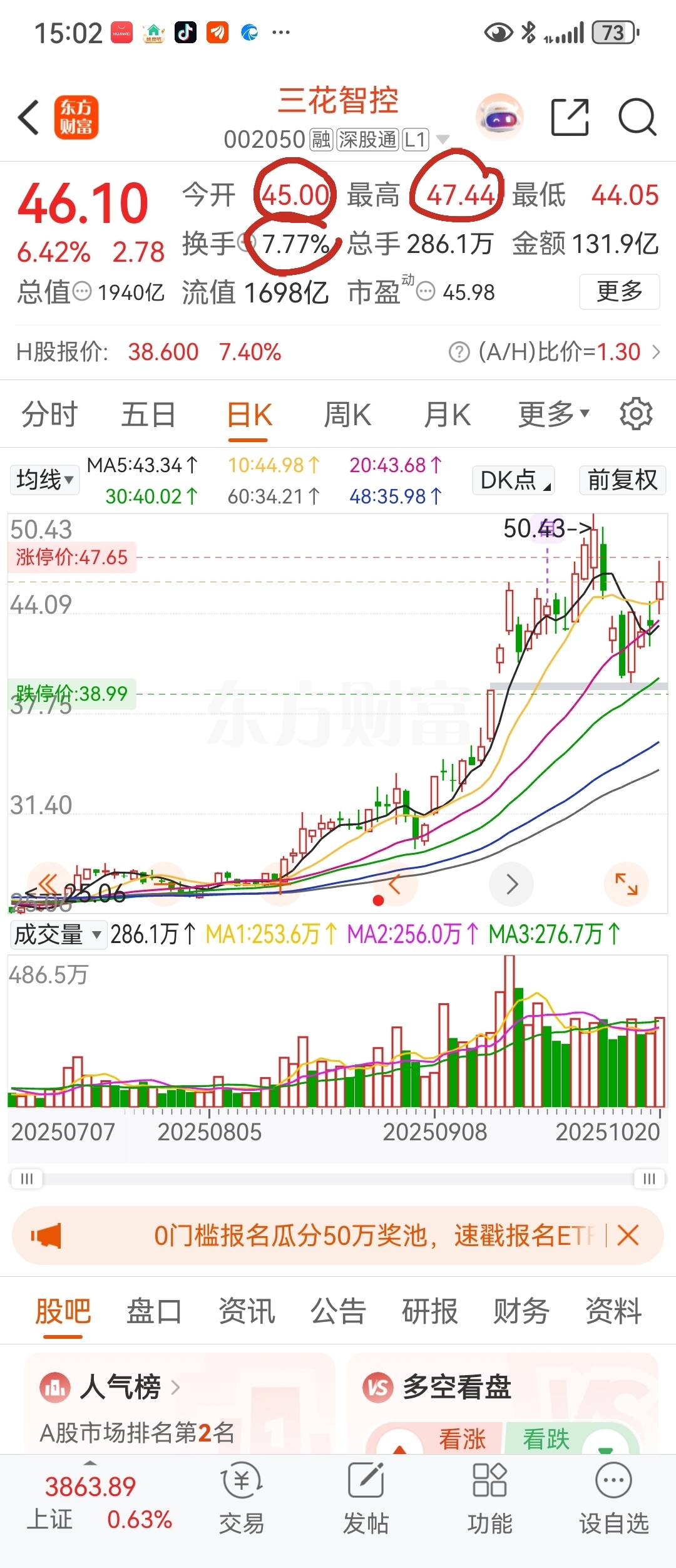 $三花智控(SZ002050)$ 很牛的盘口语言,47.44,死吃,是是。换手7.77,吃吃吃,开盘45.,是我!,是我来了,快吃吃吃,死吃,不停的吃筹码,牛。。。。。摩尔密码