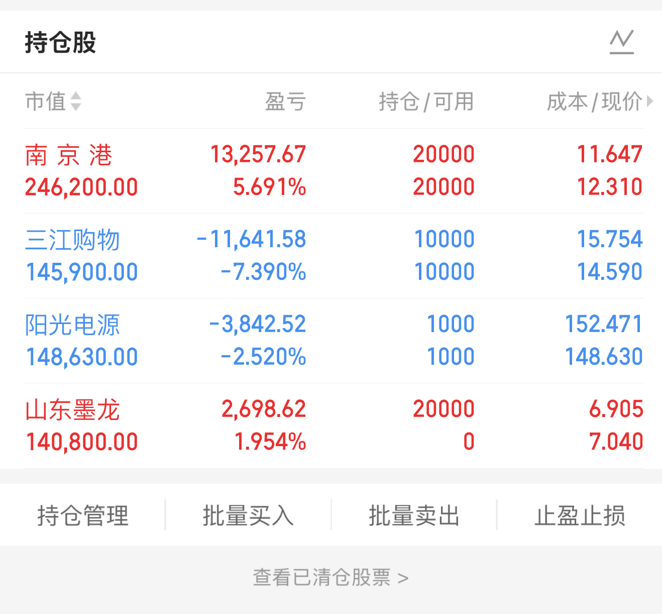 目前手上持有情况