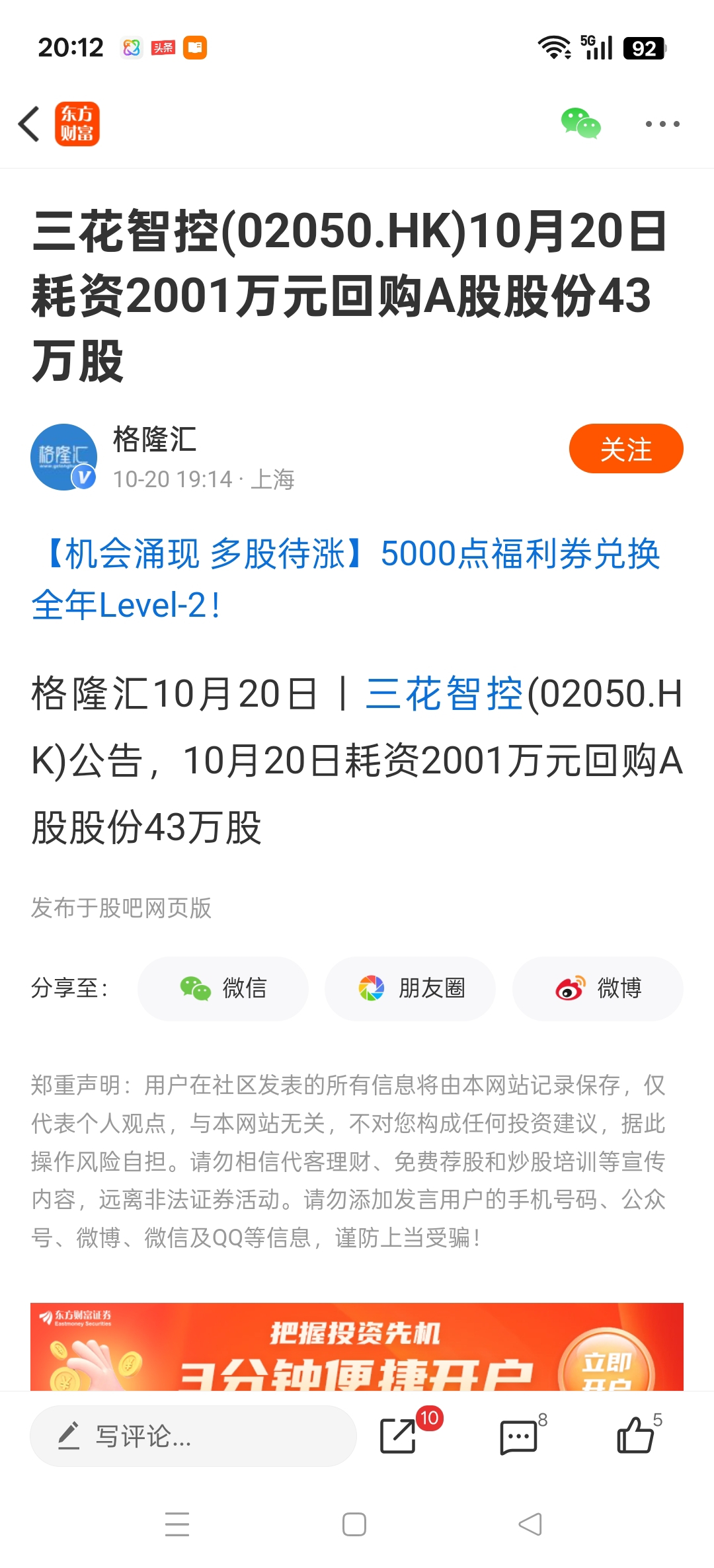 温馨提示: 1.根据《证券法》规定,禁止编造、传播虚假信息或者误导性信息,扰乱证券市场;2.用户在本社区发表的所有资料、言论等仅代表个人观点,与本网站立场无关,不对您构成任何投资建议。用户应基于自己的独立判断,自行决定证券投资并承担相应风险。《东方财富社区管理规定》