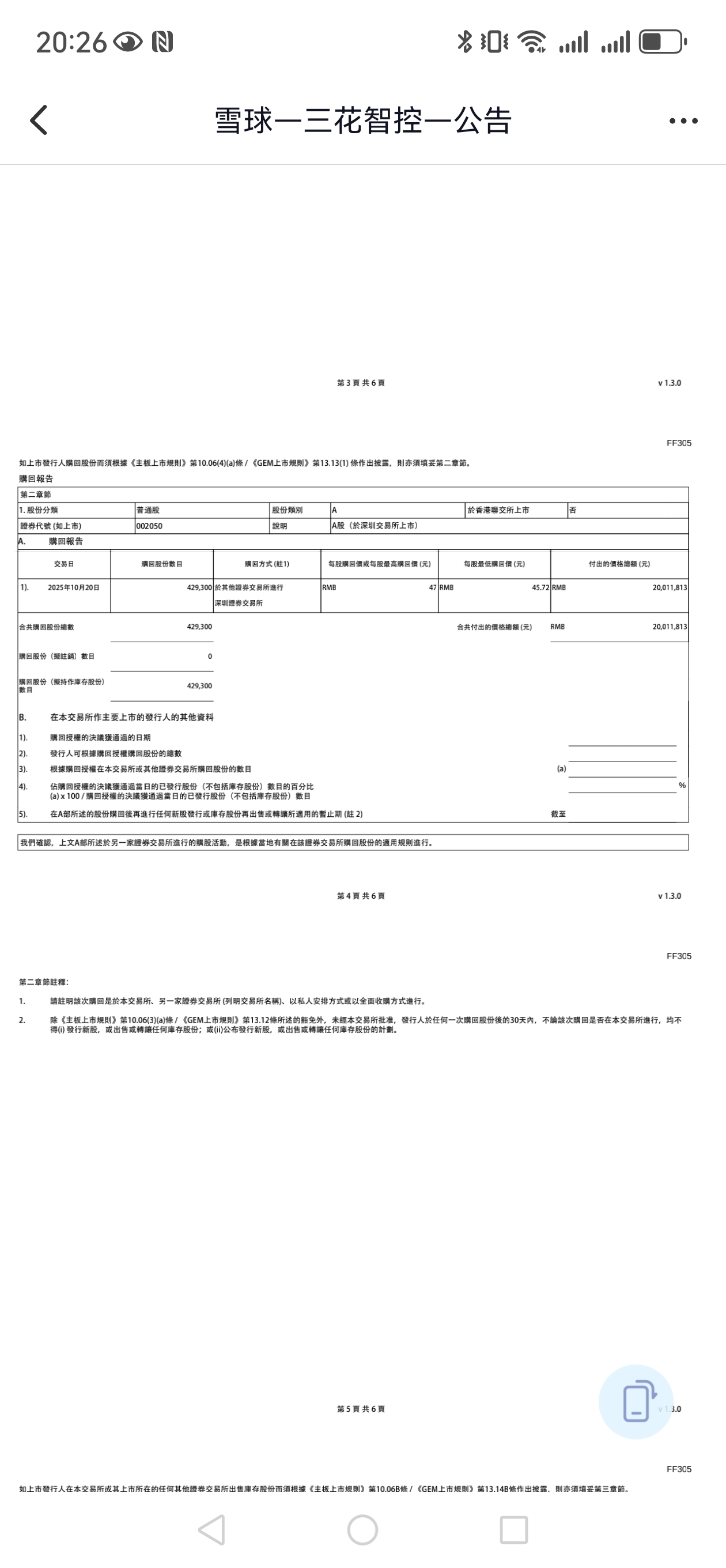 $三花智控(SZ002050)$ 今天回购2000万,继续加油回购,今天最高价格47元