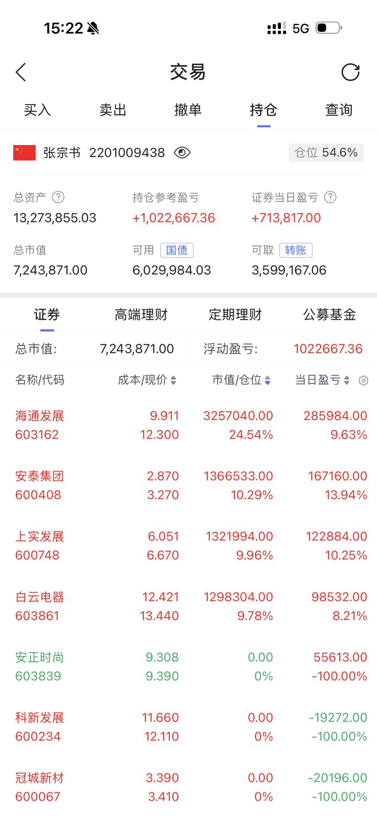 买的都涨停,卖多都跌,今天收获大满贯!重仓持有海通发展,早盘没敢加仓海通发展60