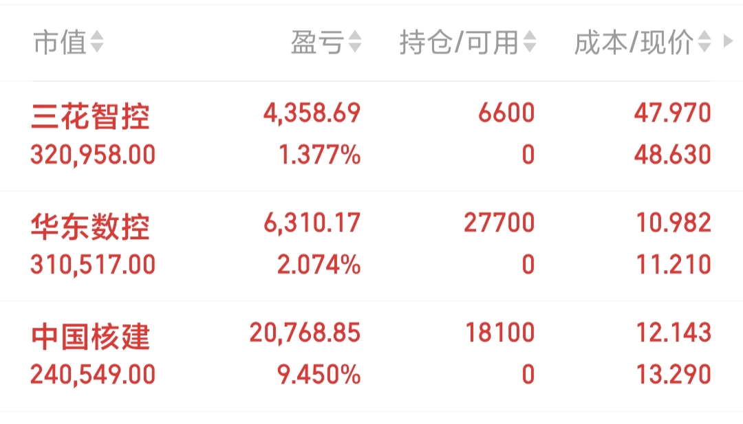 $华东数控(SZ002248)$ 股价与涨跌幅:截至收盘,涨1.82%,报11.21元,成交21.23万手,成交额2.36亿元,换手率6.9%,总市值34.5亿。今年以来股价涨44.67%,近5个交易日涨8.68%,近20日涨1.17%,近60日涨19.89%。