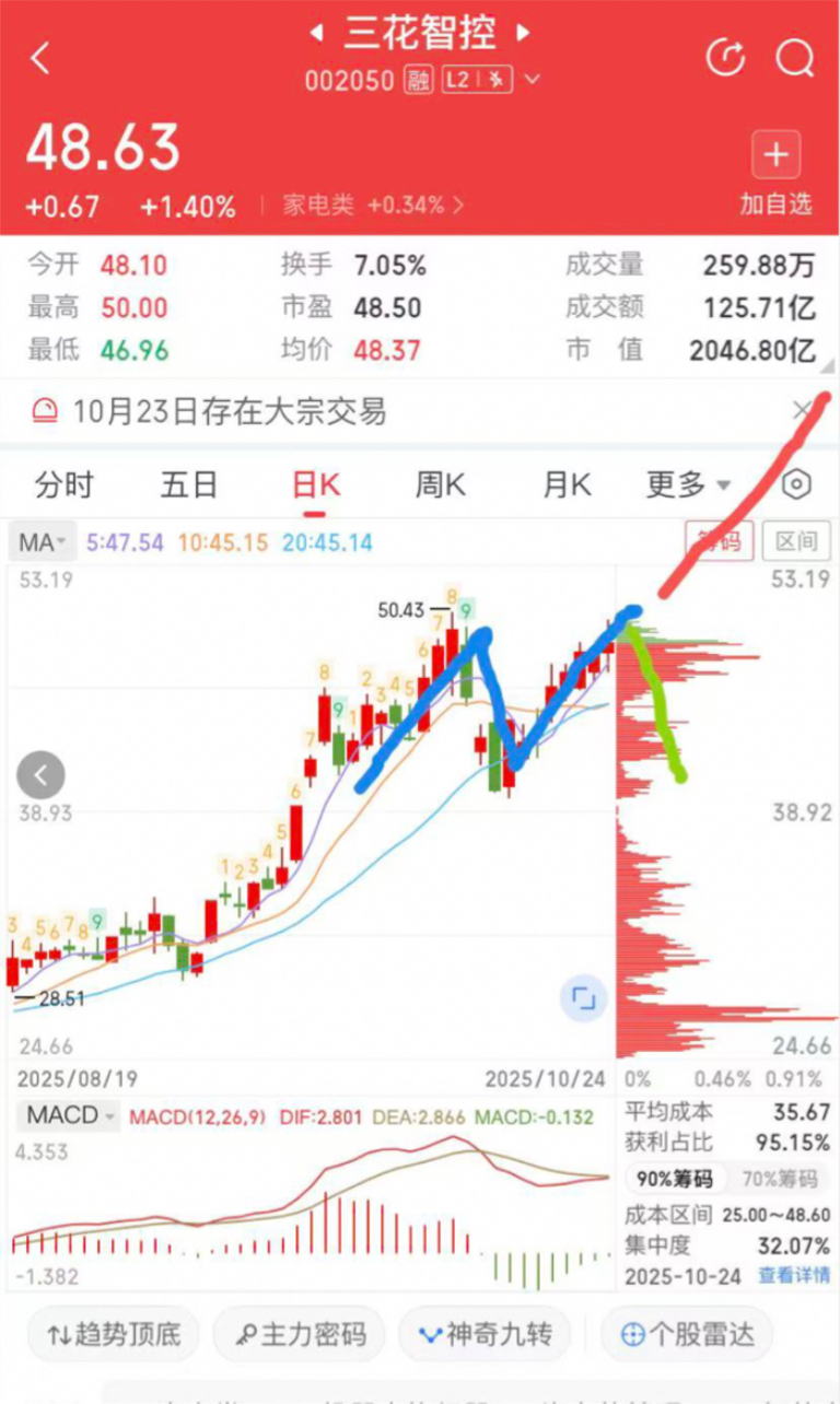 是走M头,还是破新高延五日线走成年度趋势牛股,下周定趋势。创新高并站稳就加仓,否则就暂时先撤了
