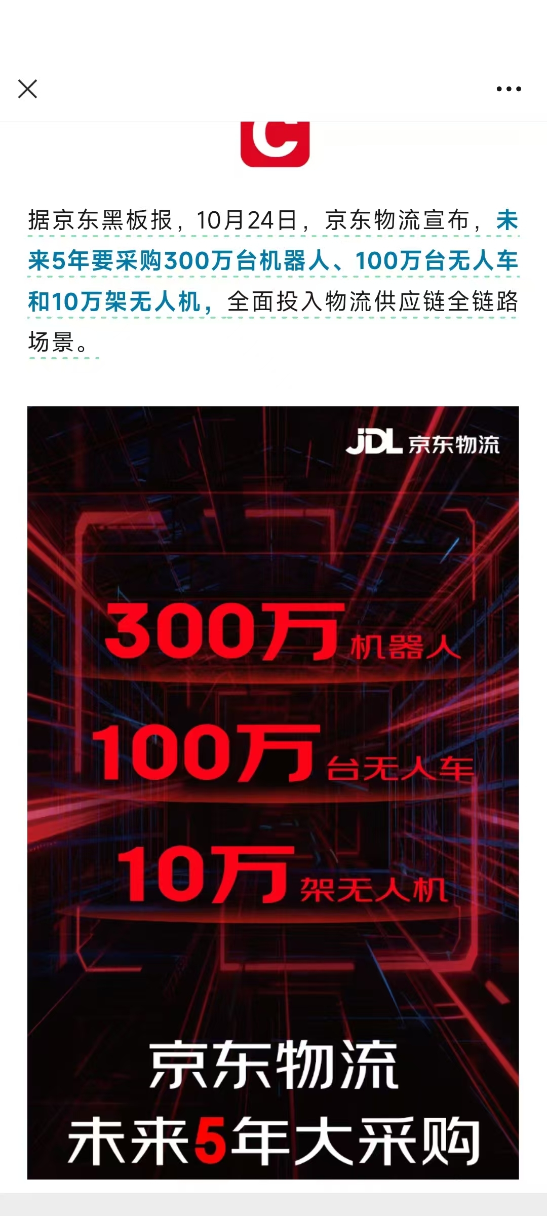 $三花智控(SZ002050)$ 重大利好!京东采购300万台机器人