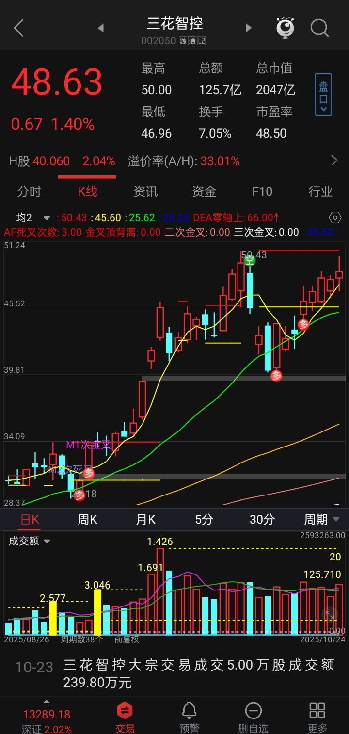 $三花智控(SZ002050)$ 双顶+中字形态是主力出货信号