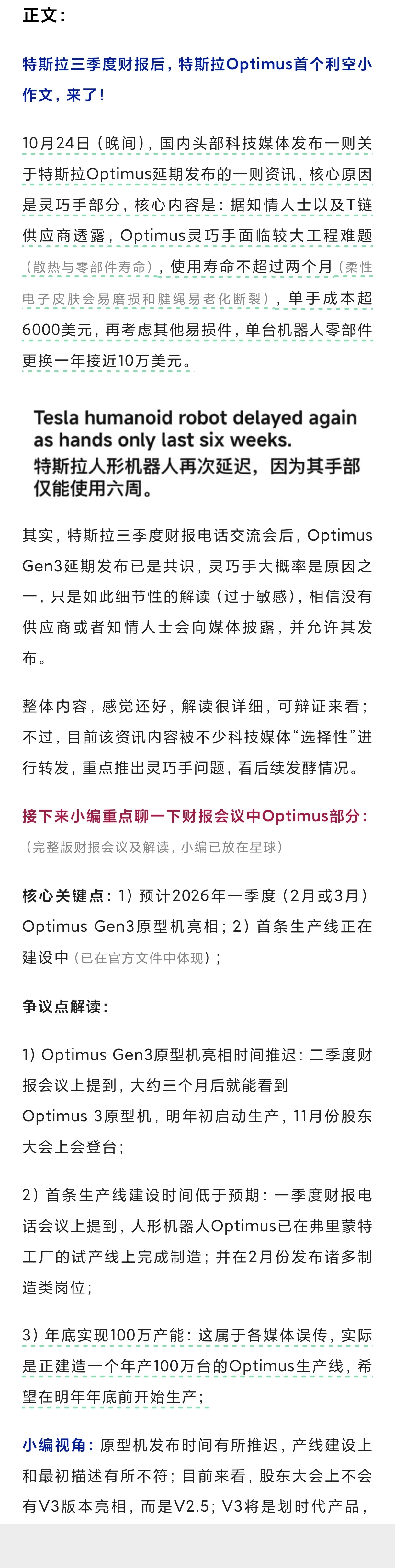 不知是真是假,如果不是空穴来风对T链又可能会是一次地震,但对宇树链却是利好,宇树科技就要正式提交IPO了,吸引T链资金大规模转移,希望Optimus雄起,尽早大规模量产,现在左右三花,右手卧龙,目前都是盈利状态,一个都不想少!如果这个小作文又发酵,是不是就要清仓三花到卧龙了。请求大佬点拨