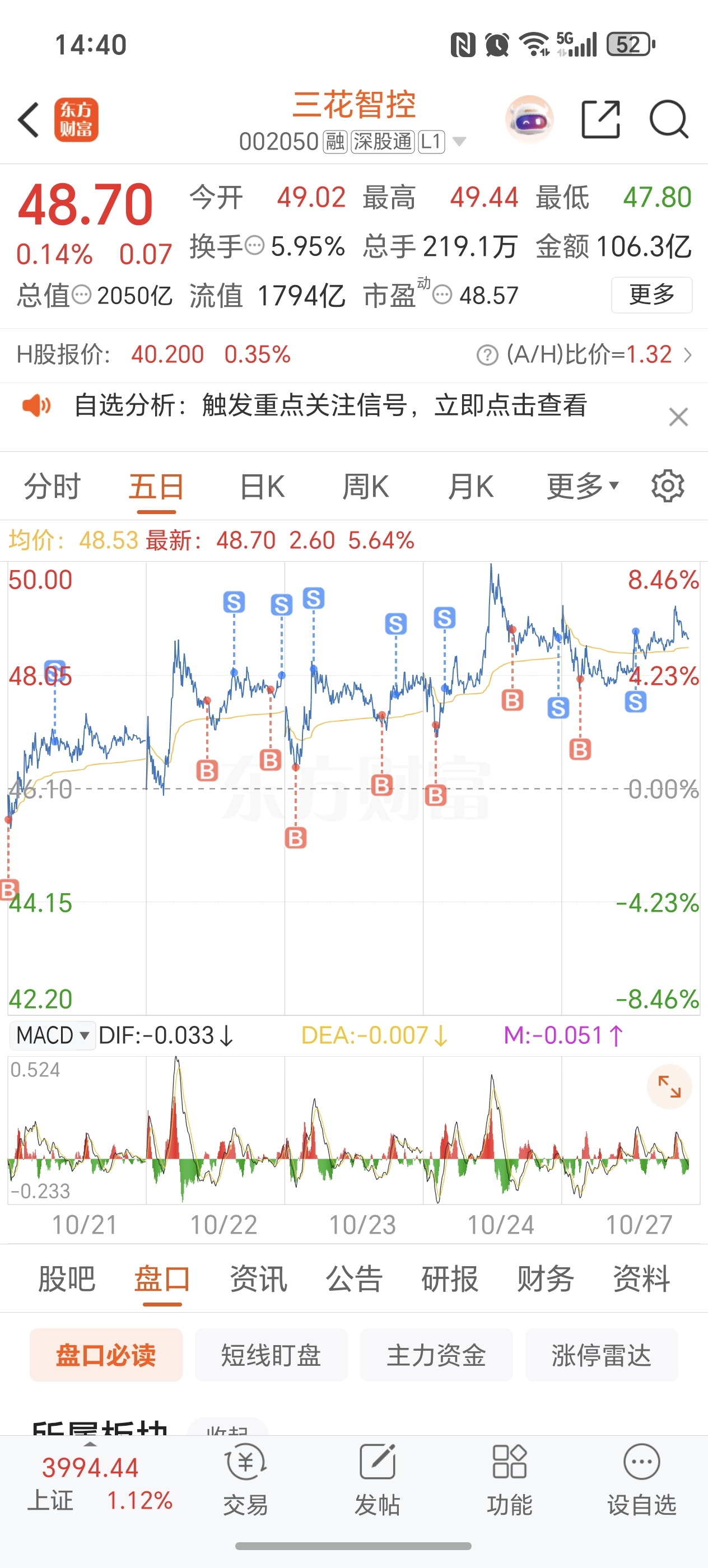 $三花智控(SZ002050)$ 这50怎么这么难上啊
