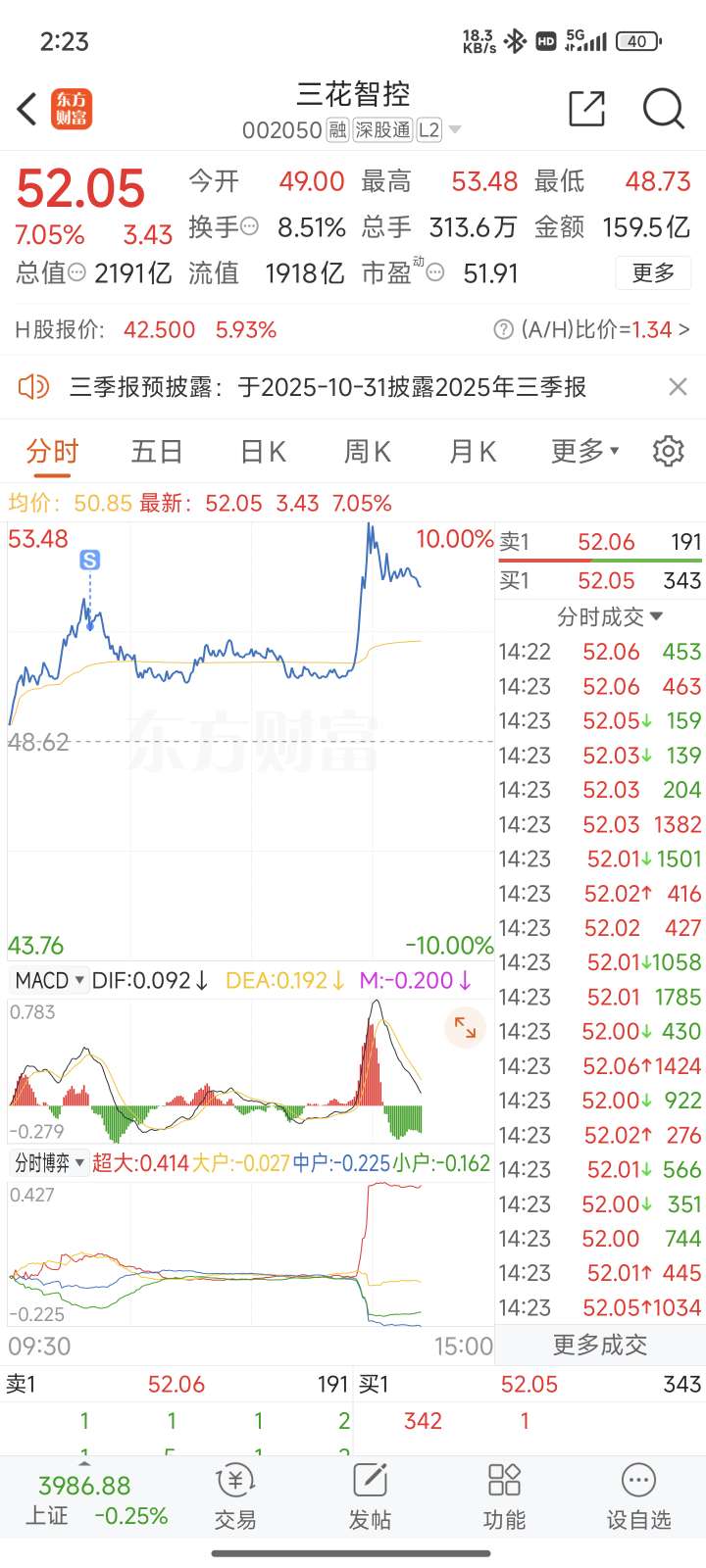 $三花智控(SZ002050)$ 可惜早上减仓没做t,切换去大洋了,大洋今天抛压有点大