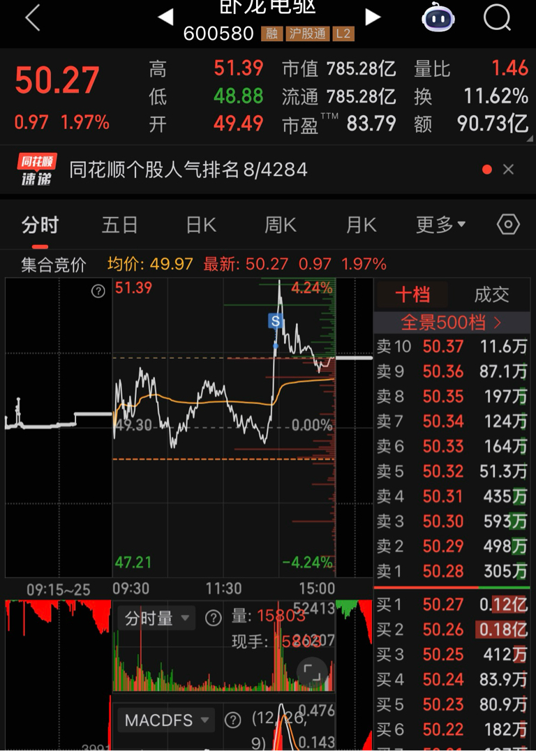 $三花智控(SZ002050)$ $卧龙电驱(SH600580)$ 三花不拉,卧龙就不敢动,那我只能止盈卧龙了