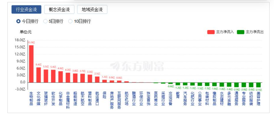 行业板块涨跌互现,船舶制造板块大涨,航运港口、汽车服务、航天航空、铁路公路、航空机场板块涨幅居前,贵金属、能源金属、风电设备、钢铁行业、有色金属、美容护理板块跌幅居前。福建板块掀起涨停潮,路桥信息30cm涨停,海峡创新20cm涨停,福建水泥、漳州发展、平潭发展、厦门空港、厦门港务等10余只股票涨停。行业紫金流向:15.89亿净流入生物制品。行业紫金方面,截至收盘,生物制品、文化传媒、玻璃玻纤等净流入排名靠前,其中生物制品净流入15.89亿。