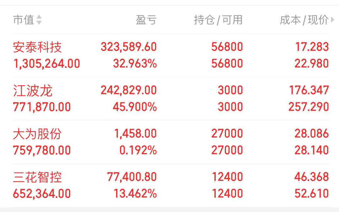 现在新高已经出现,连续的大拉升盈利很可观,我也不怕回调,只要五日线附近稳得住,那么走趋势波段没问题,强者恒强可不是随便说说的,那都是经得起历史的考验的,再怎么也要拿到周五再说,我才不管他怎么洗盘呢,均线位置止跌强的短期还有机会的。