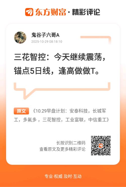 //@鬼谷子六哥A :三花智控:今天继续震荡,锚点5日线,逢高做做T。