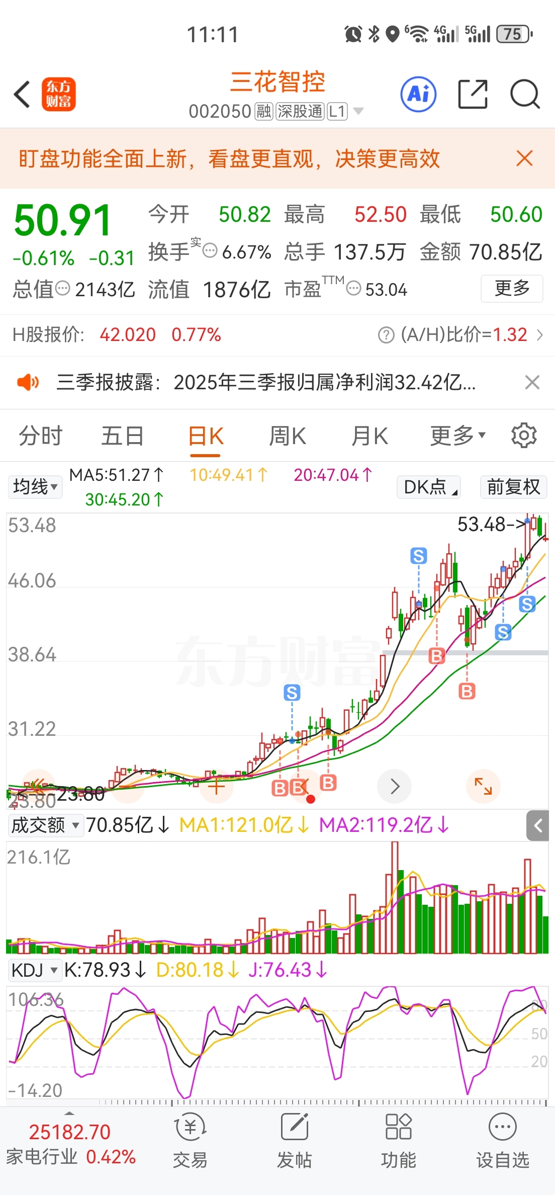 $三花智控(SZ002050)$ 我先撤,你们跟上