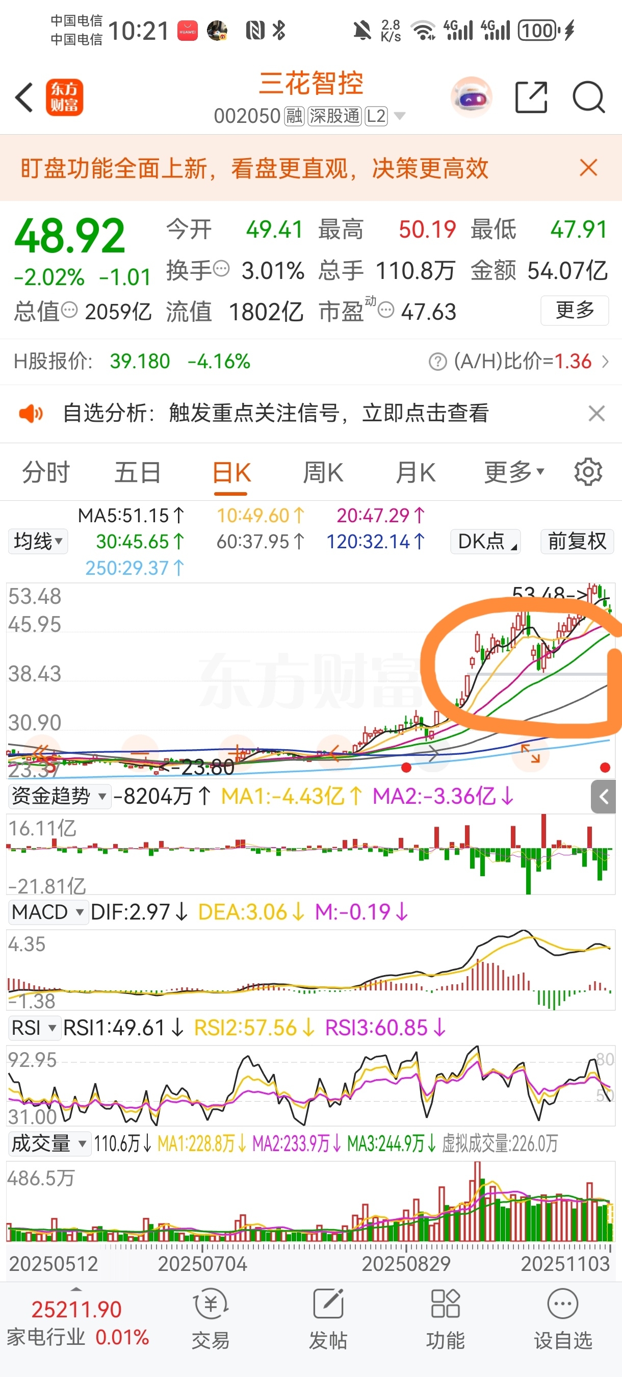 $三花智控(SZ002050)$ 兄弟们等补了40那里的缺口再进