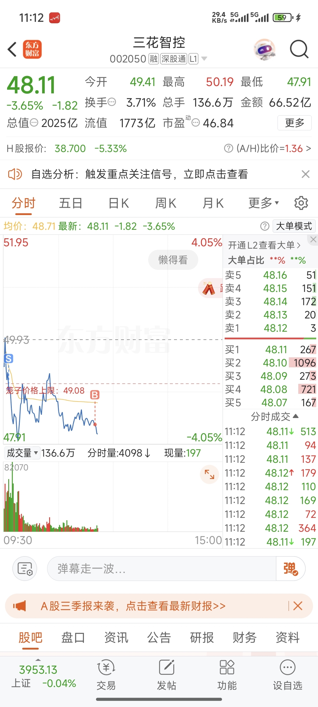 $三花智控(SZ002050)$ 早上看见砸盘跑了,坏消息又回来接盘了