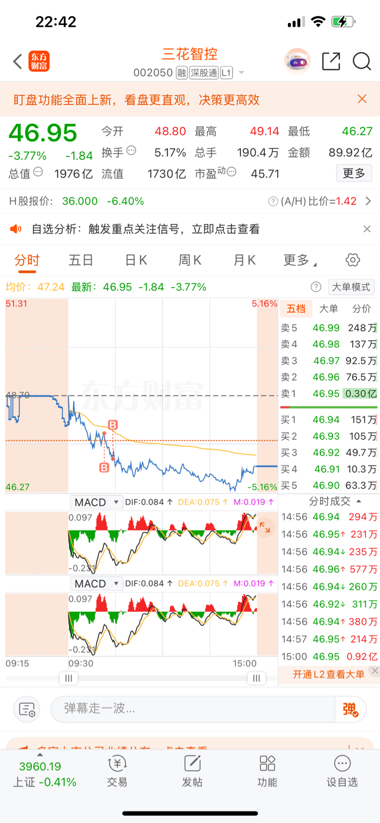 $三花智控(SZ002050)$ 都看空,明天会不会反着来呢