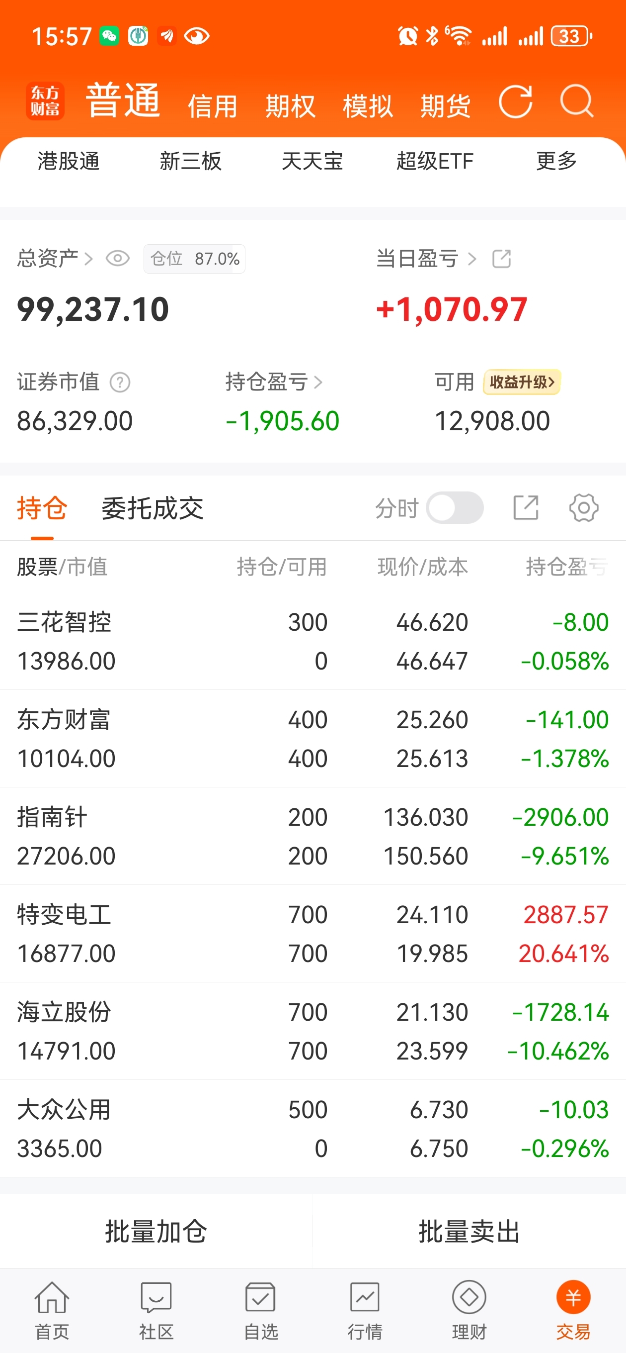 我来开超市了,今天进了300股三花智控,和500股大众公用。