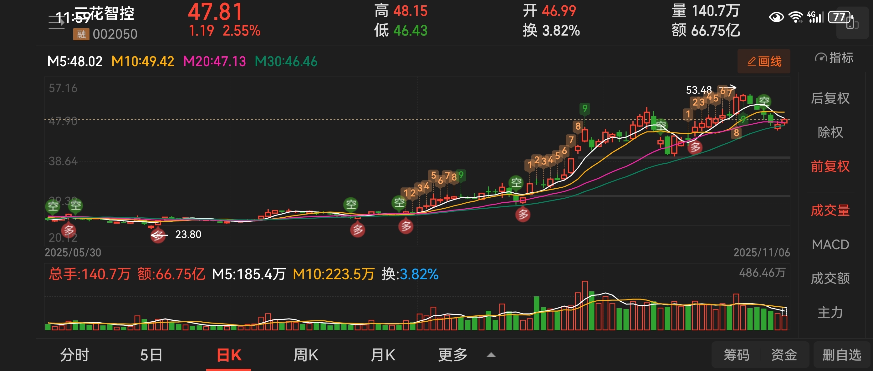 $三花智控(SZ002050)$ 昨日发帖兑现,继续看