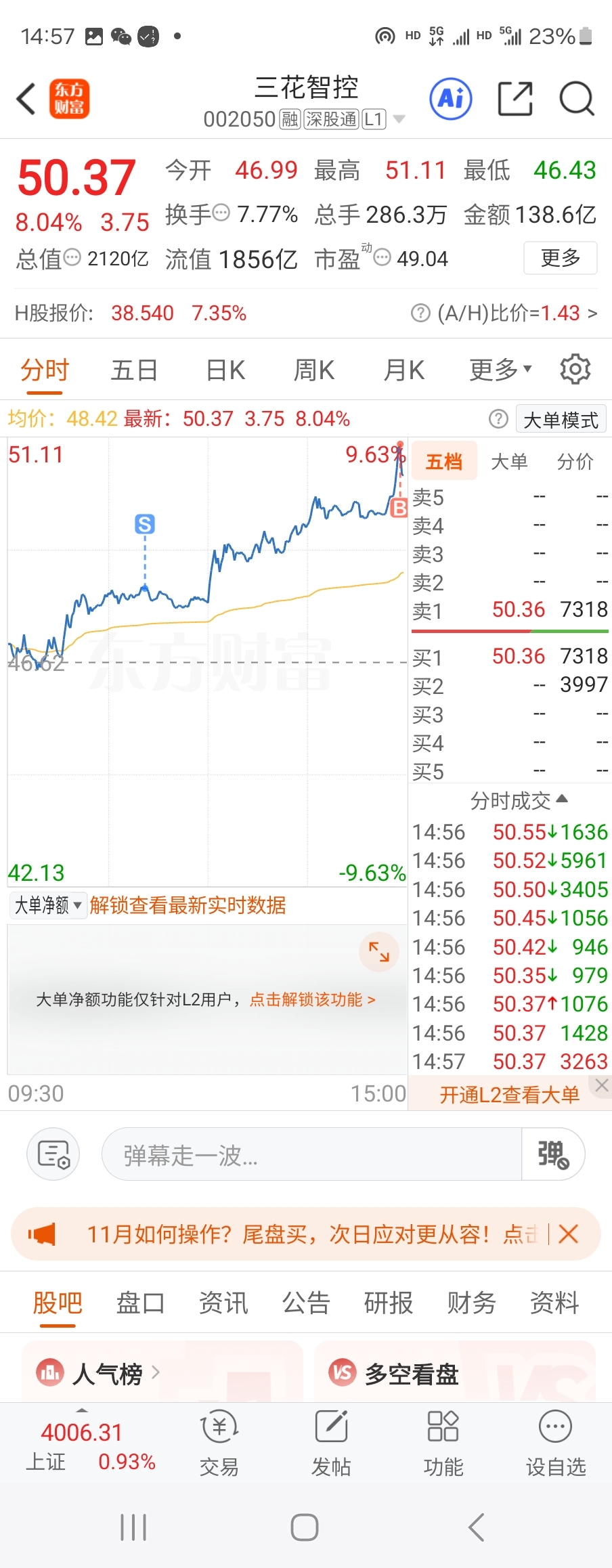 $三花智控(SZ002050)$ 亏了6天,来了一波这样的操作
