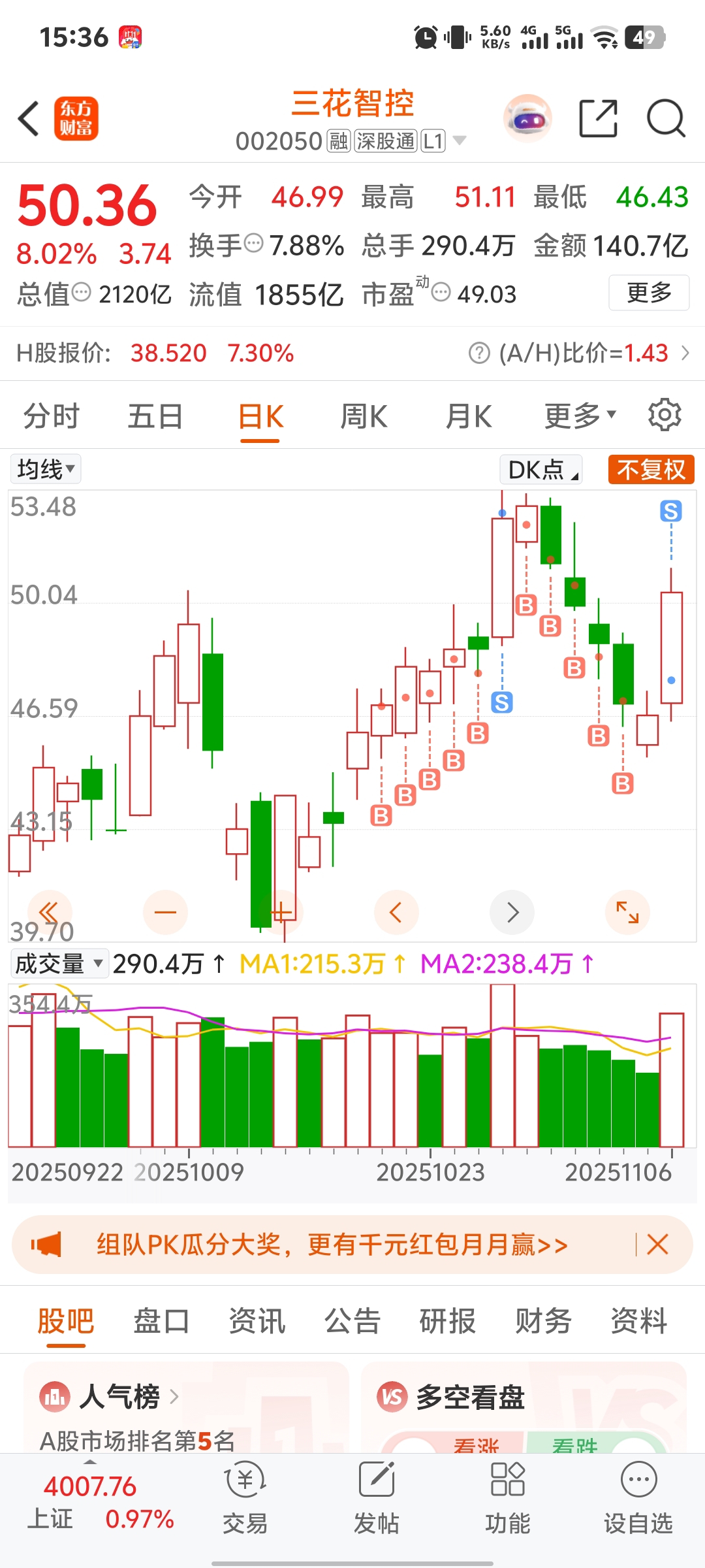 $三花智控(SZ002050)$ 终于熬出头了,早上卖了一点,心疼