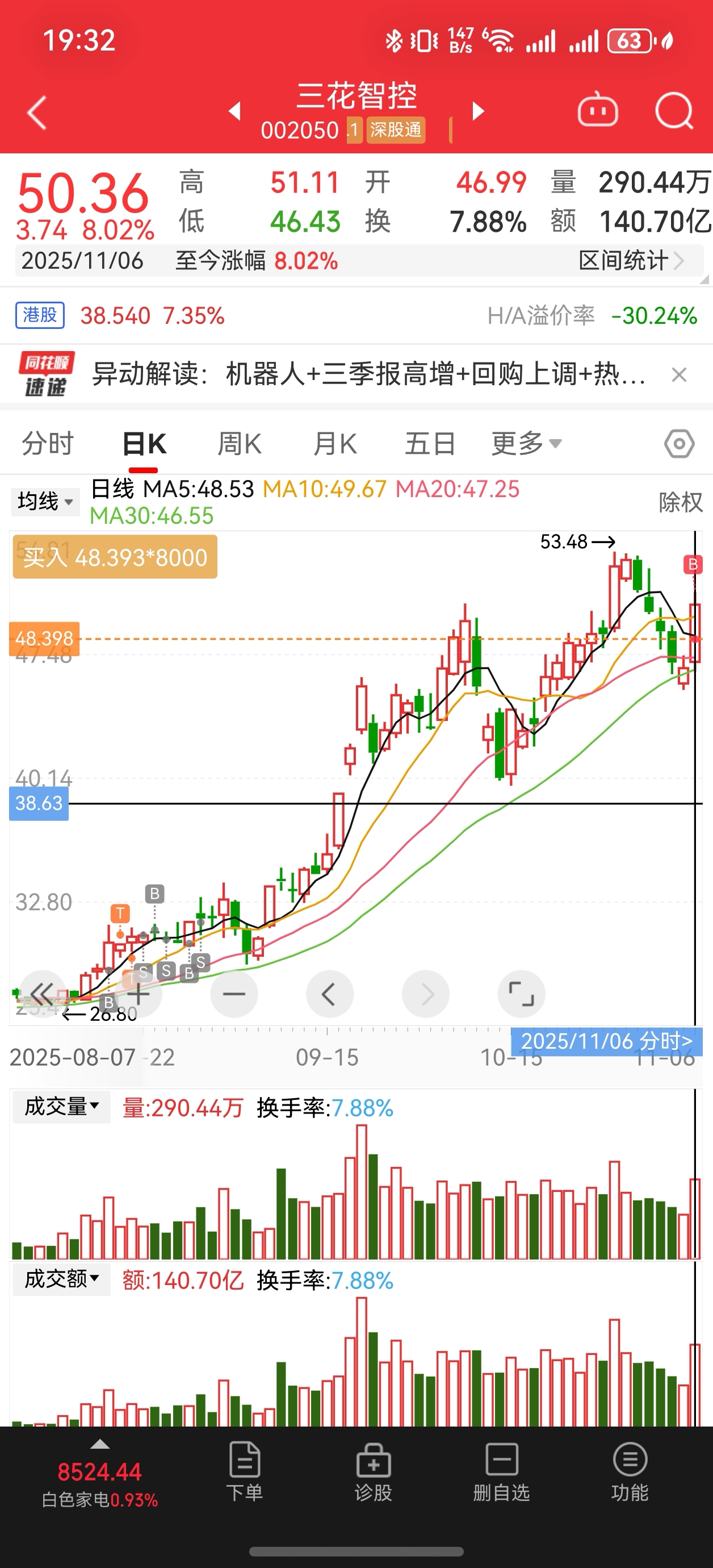 $三花智控(SZ002050)$ 重新把你捡回来,希望不要让我失望!