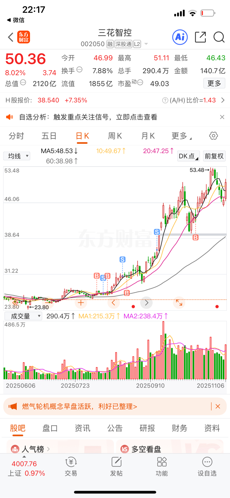 $三花智控(SZ002050)$ 明天还有肉吃不