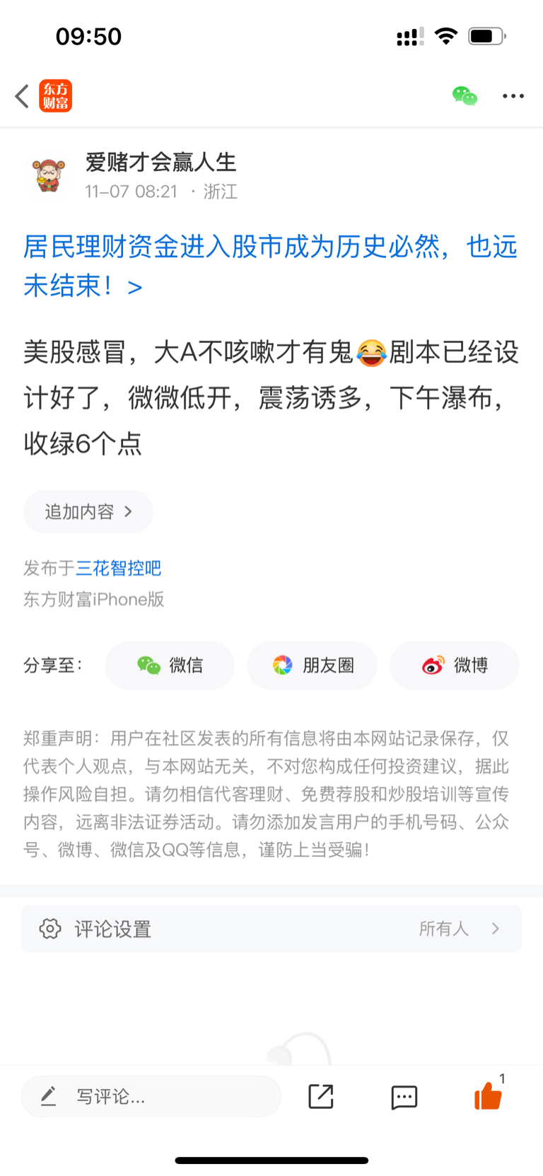 温馨提示: 1.根据《证券法》规定,禁止编造、传播虚假信息或者误导性信息,扰乱证券市场;2.用户在本社区发表的所有资料、言论等仅代表个人观点,与本网站立场无关,不对您构成任何投资建议。用户应基于自己的独立判断,自行决定证券投资并承担相应风险。《东方财富社区管理规定》