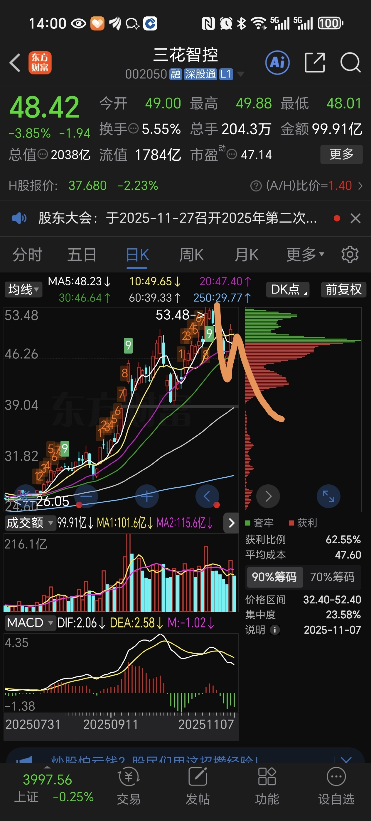 $三花智控(SZ002050)$ 周一可别受特影响呀!