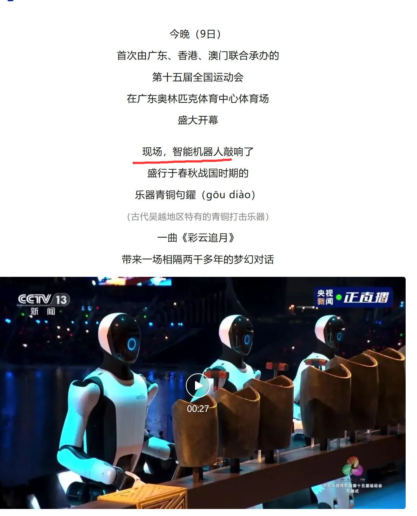 机器人在全运会开幕式敲钟了!