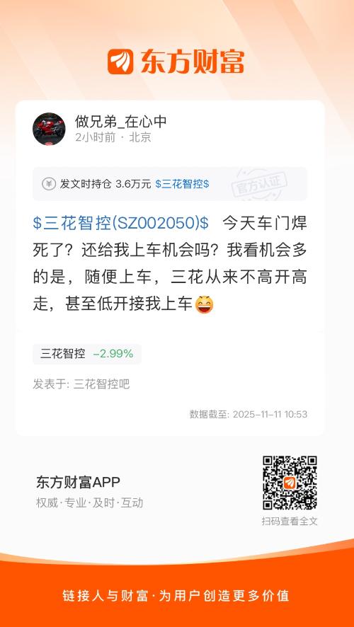 $三花智控(SZ002050)$ 今天车门焊死了?还给我上车机会吗?我看机会多的是,随便上车,三花从来不高开高走,甚至低开接我上车