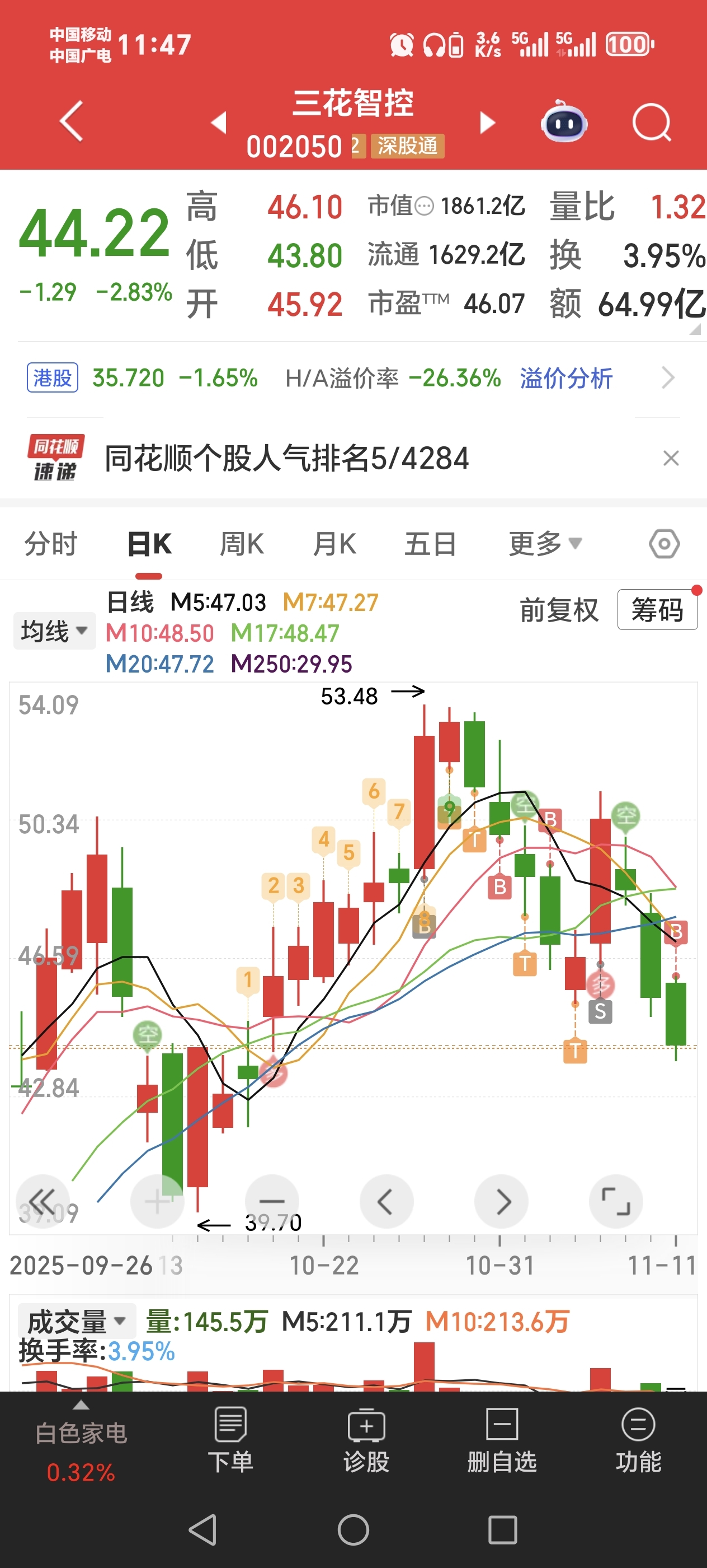 $三花智控(SZ002050)$ 兄弟们,我又接回来了