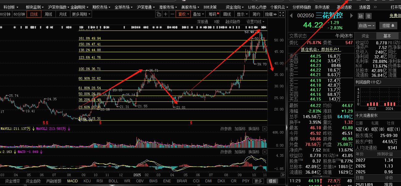 1浪和3浪都是2.5倍左右,如果这次回调到40上下,如果有五浪的话就是100