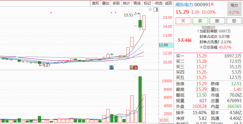 $闽东电力(SZ000993)$,福建板块+风电概念,公司是福建宁德国Z委旗下,福建省最大的电力股份制企业,甄选这票还有一个策略,就是如果福建板块真的退潮,则用海上风电题材做对冲,两部门盘后指出,继续推动近海风电开发,有序推动深远海风电基地建设,闽东电力分别参与了宁德深水 B-1 区海上风电场项目以及宁德霞浦海上风电 B 区项目的开发与运营,昨天反包,今天如果海峡两岸概念退潮,则最好走加速,如果还继续高涨,以及海上风能如此领涨,则低开或者小幅高开都是好时机。另外,吉林化纤也是风能概念,需要高开高走+放量才有辨识度,也同步留心下。