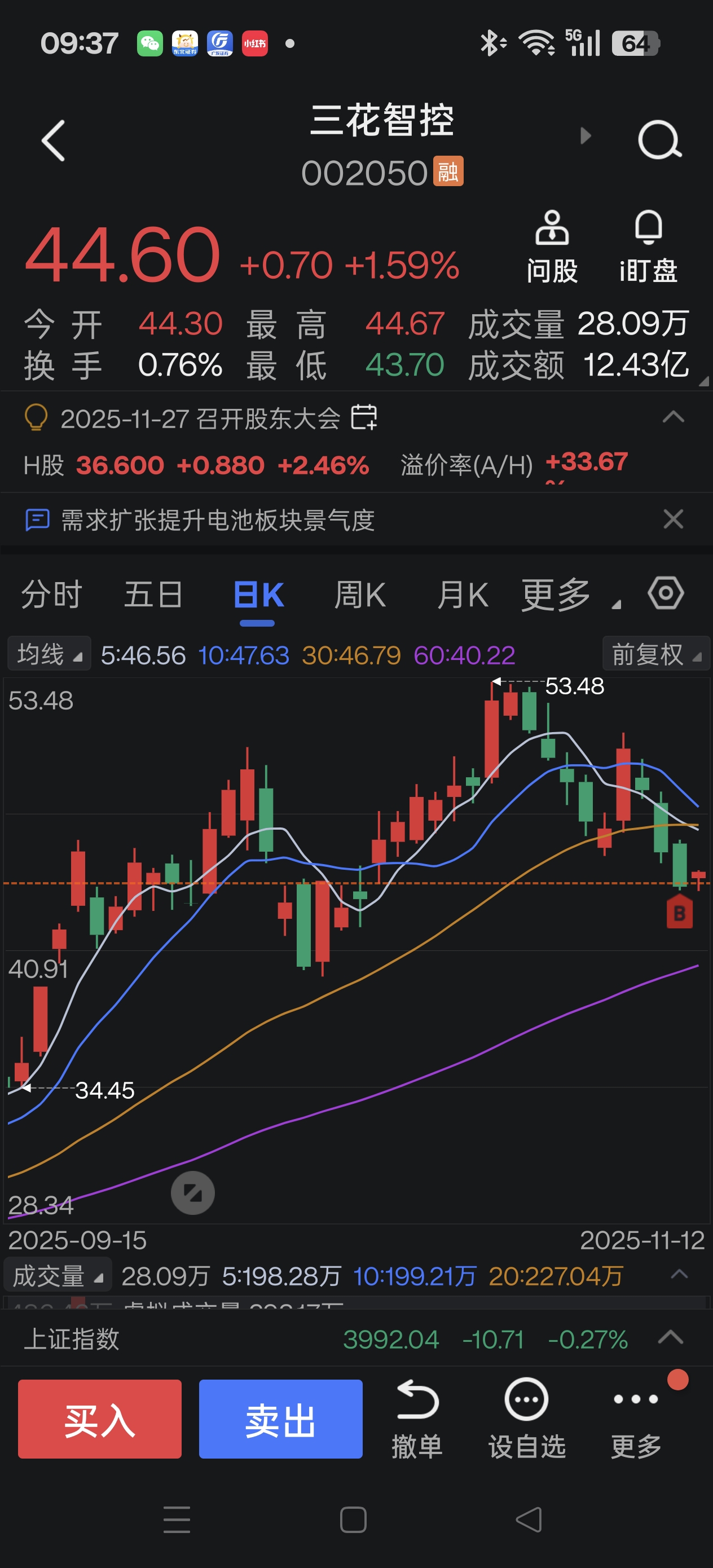 $三花智控(SZ002050)$ 今天的肉钱稳当了,不用吃素了
