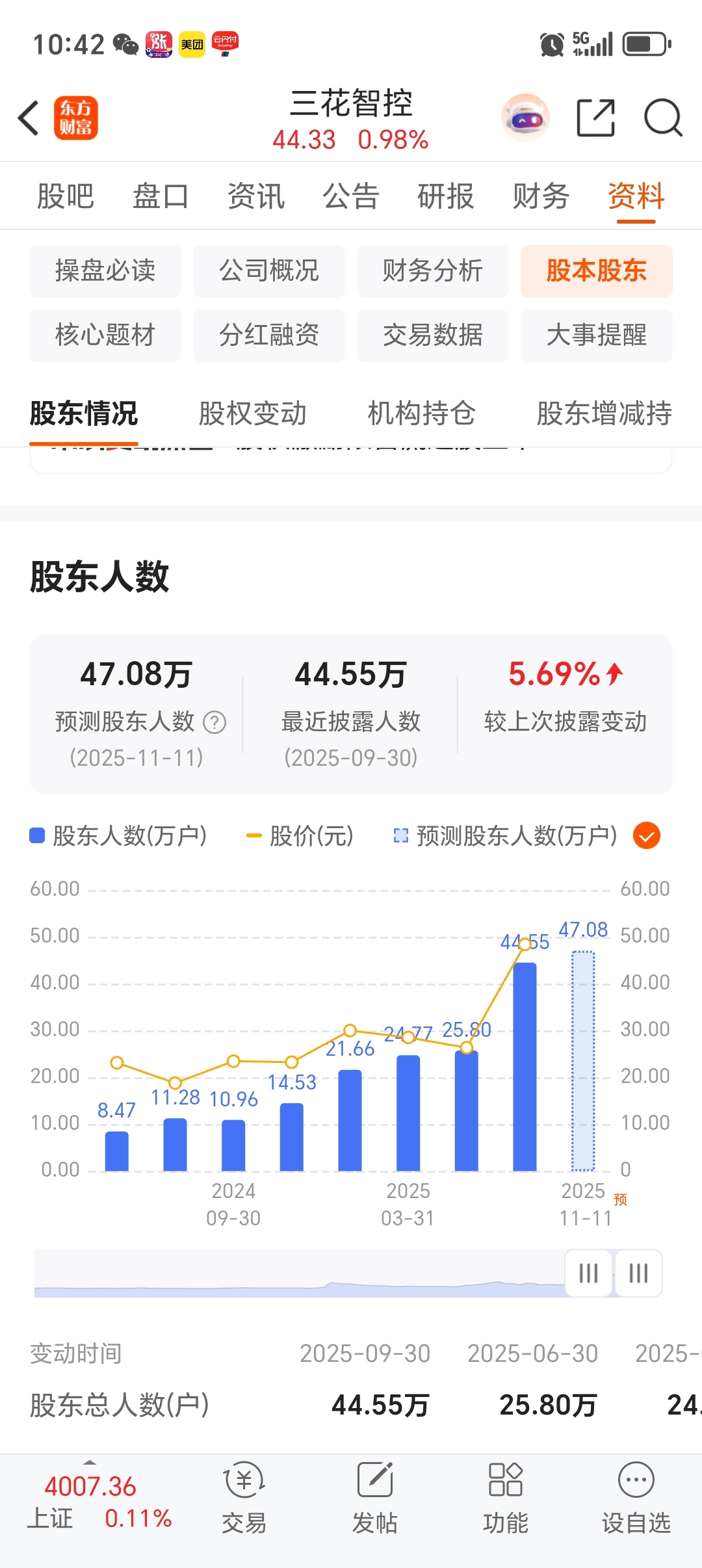 周二的时候截图是47.08(预测是11月11号)。今天截图一看47.46(预测是