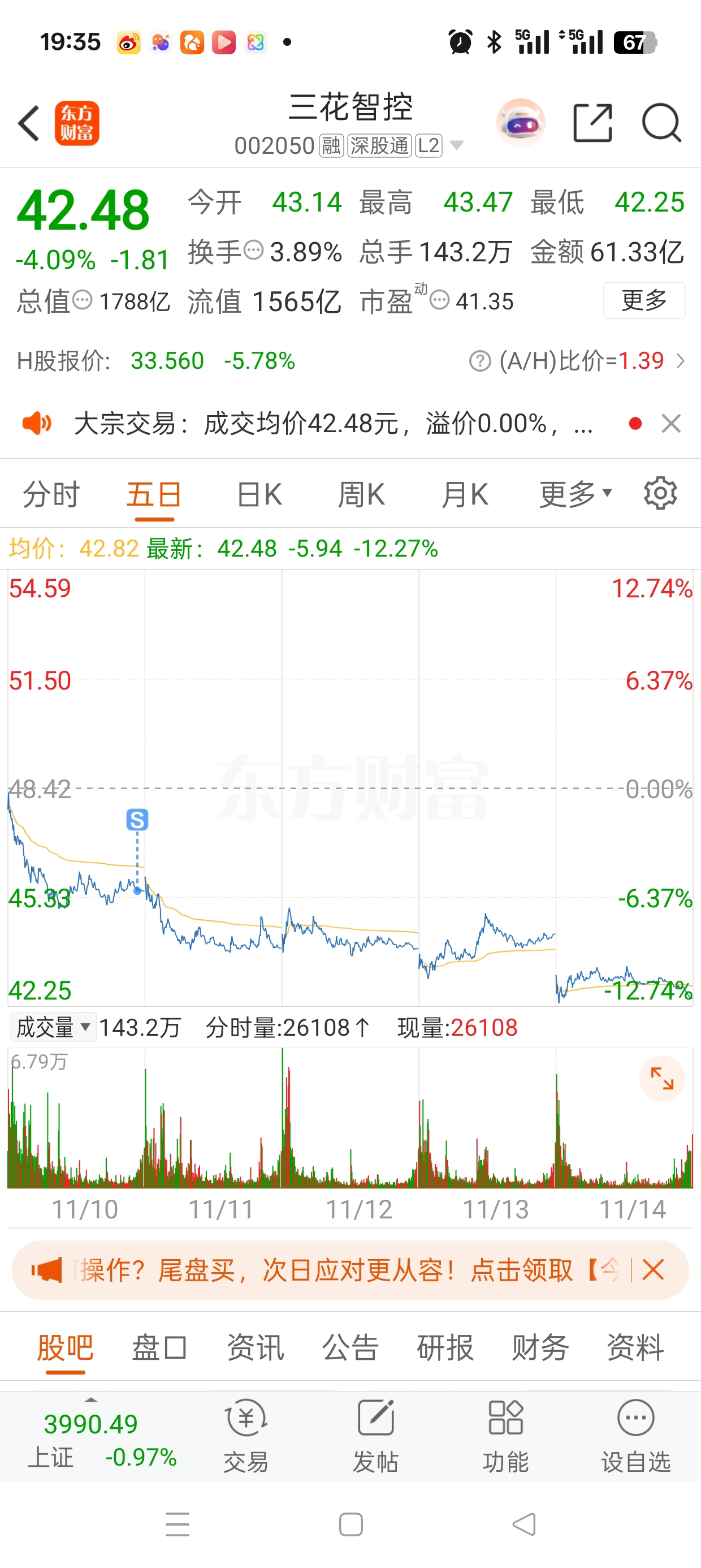 $三花智控(SZ002050)$ 还好卖了,越想越气回来看看