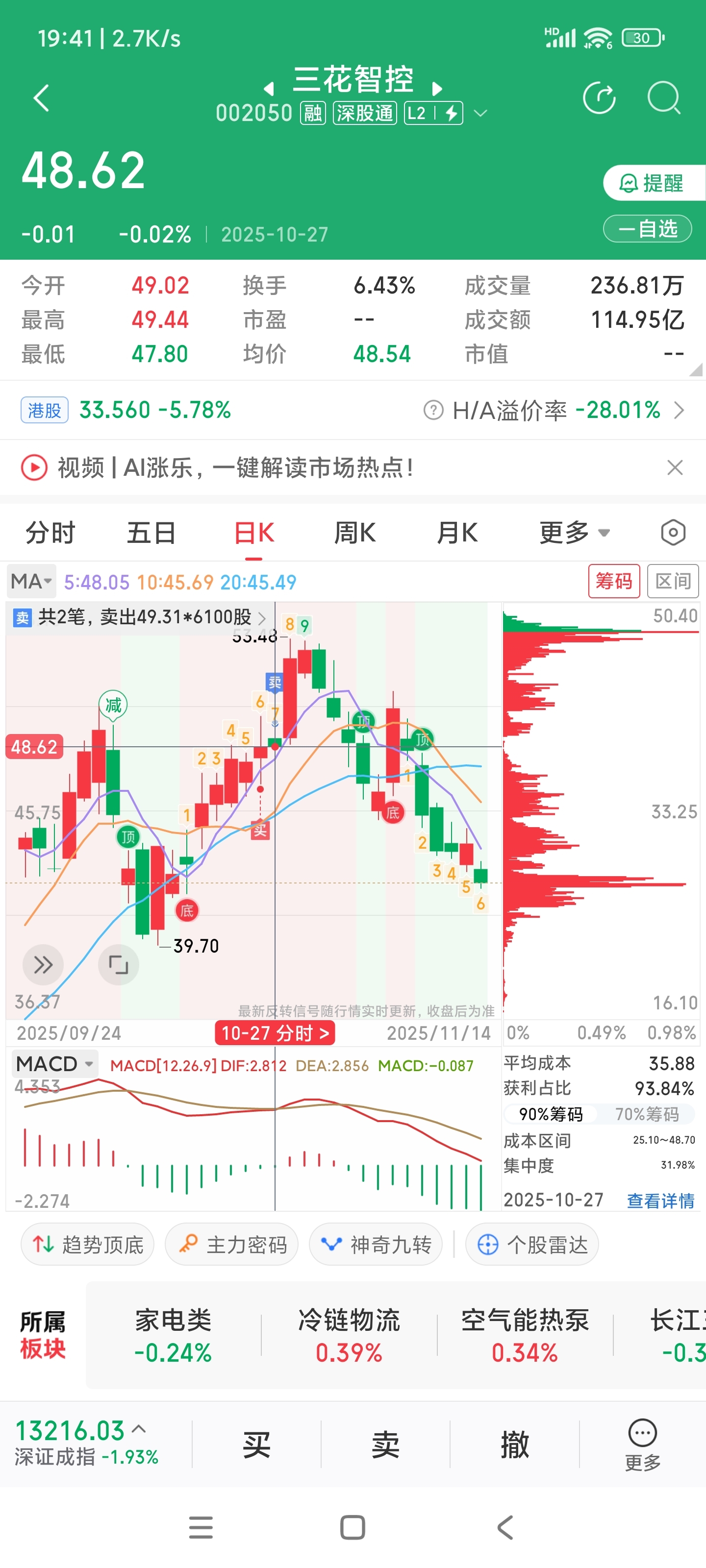 $三花智控(SZ002050)$ 是卖飞了,也卖对了