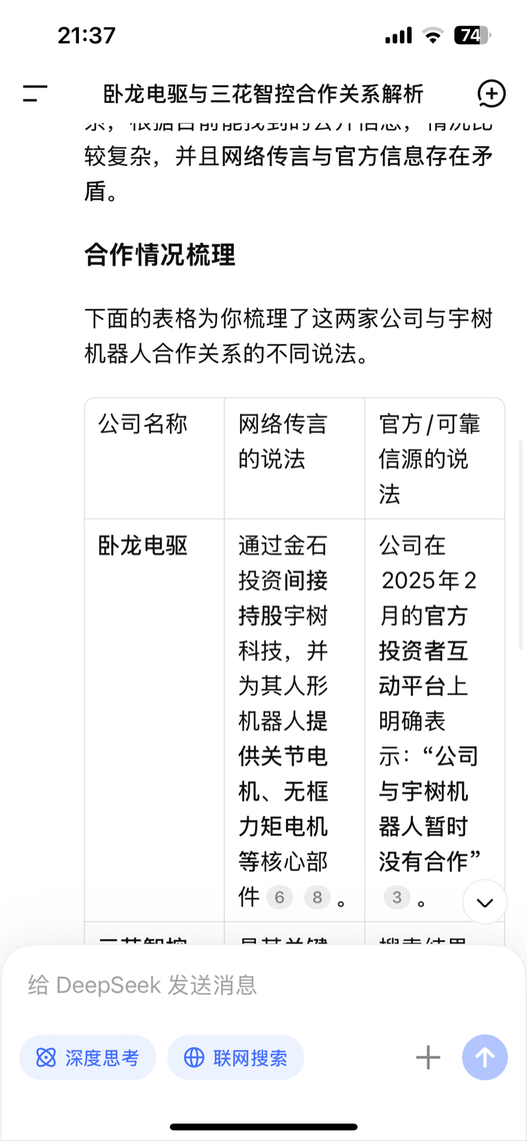 和卧龙电驱两家和宇树机器人合作消息,以前只听说卧龙,怎么三花母公司还有股份呢?哪