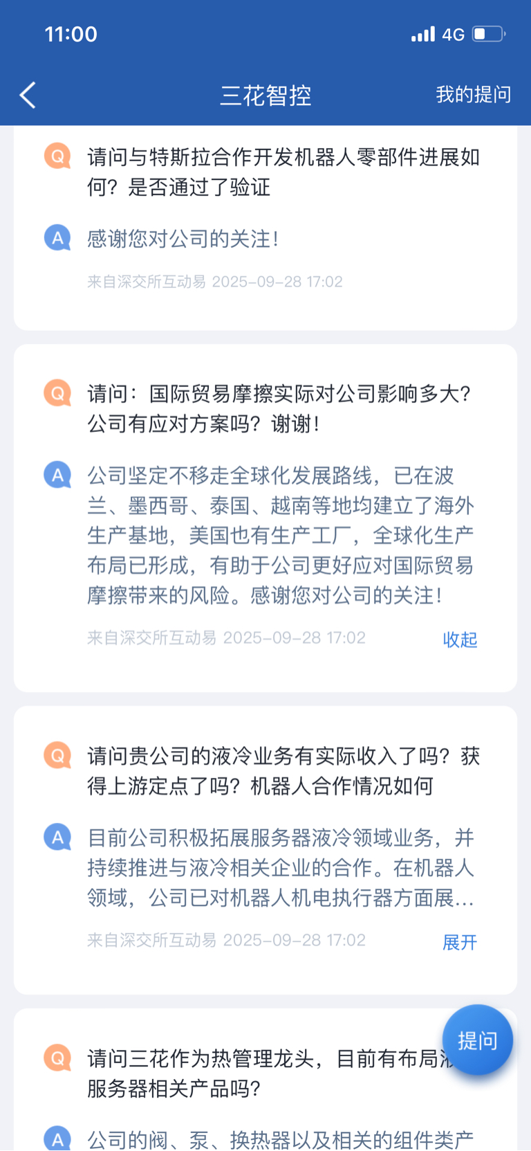 $三花智控(SZ002050)$ 2025年9月28日公司回答投资者:公司坚定不移走全球化发展路线,已在波兰、墨西哥、泰国、越南等地均建立了海外生产基地,美国也有生产工厂,全球化生产布局已形成,有助于公司更好应对国际贸易摩擦带来的风险。感谢您对公司的关注!