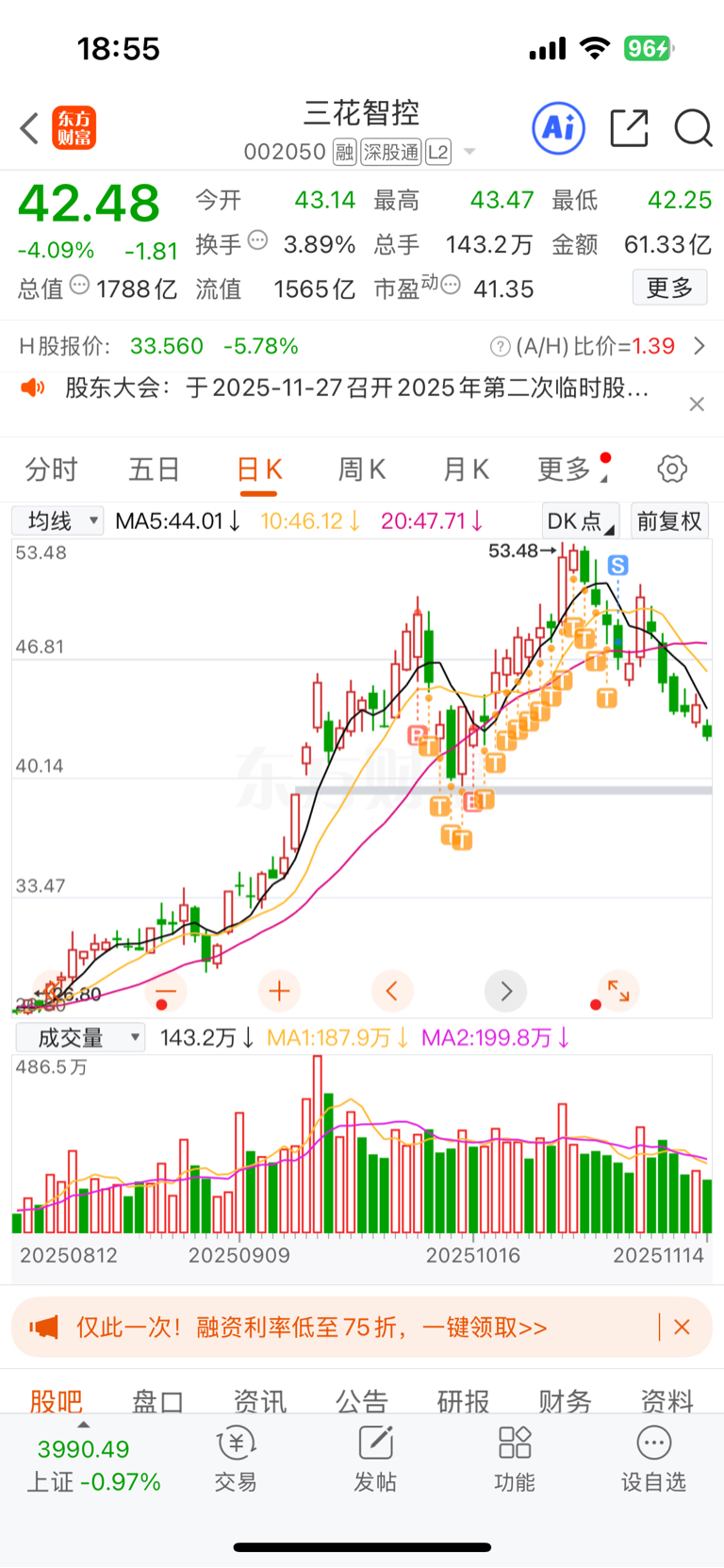 $三花智控(SZ002050)$ 三花让我资产从100到150的,周一低开就接回来