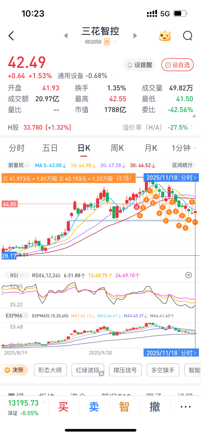 $三花智控(SZ002050)$ 涨跌无关了,今天卖掉昨天多加的2300股,另外10000股做T一毛八,手续费三分,实际盈利1500。