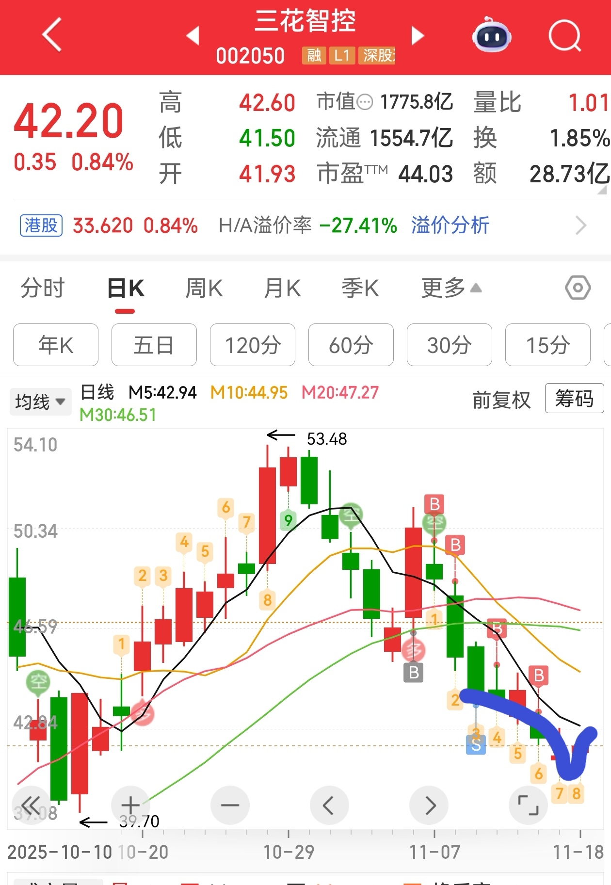 我也是一个套牢的散户,大家看我画的线,明天如果继续微涨就是一个七星灯啊。