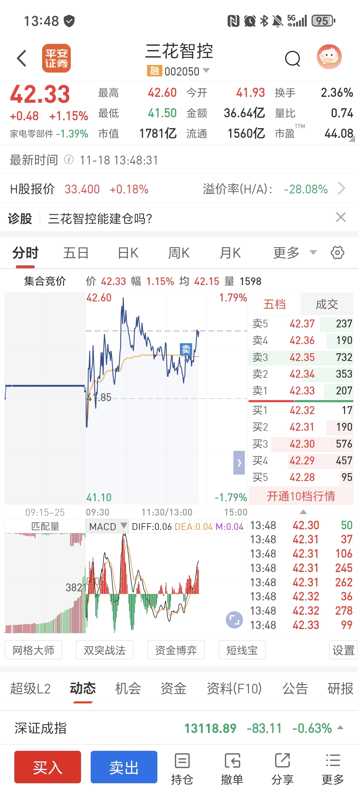 $三花智控(SZ002050)$ 就是看着我的50手?41.85的本