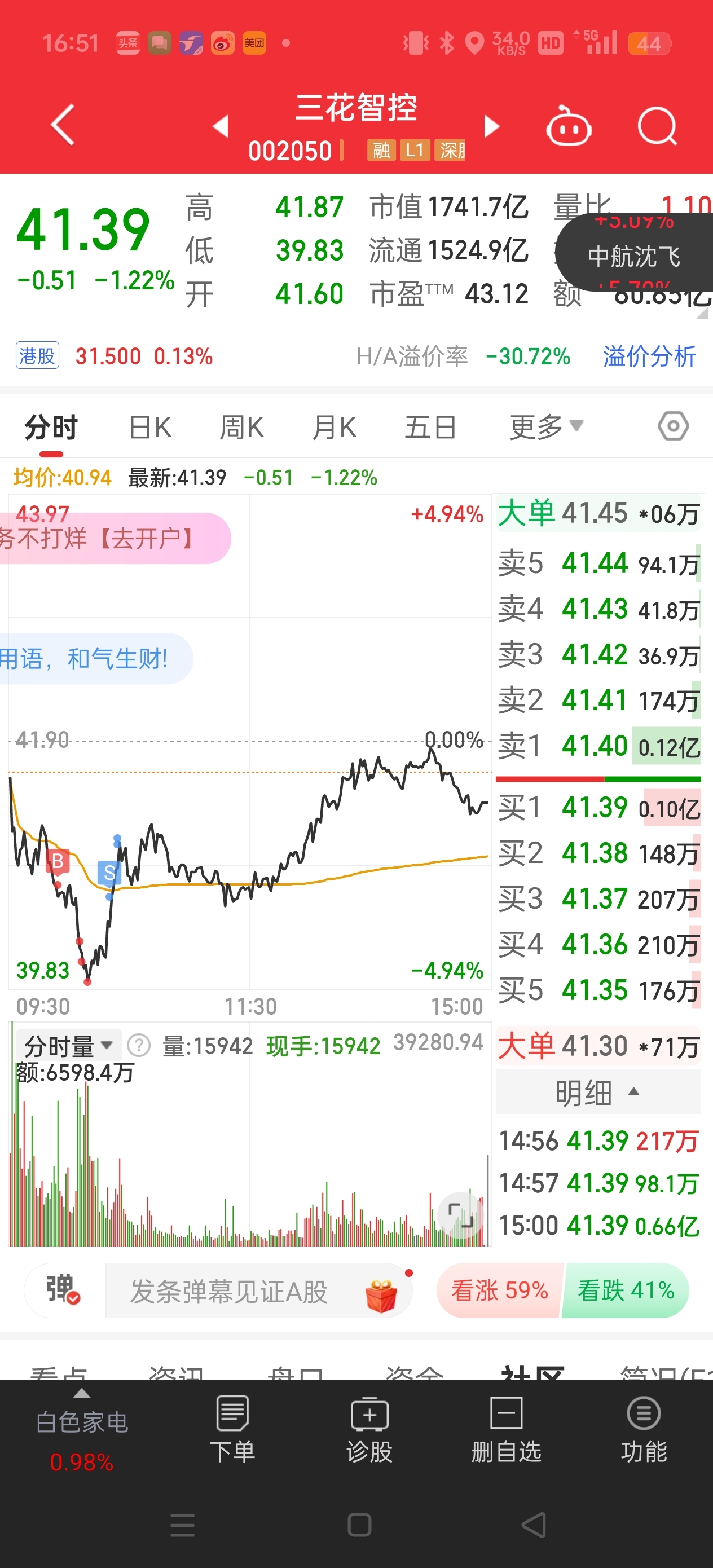 $三花智控(SZ002050)$ 第一笔买入等红,挂单T就差一点
